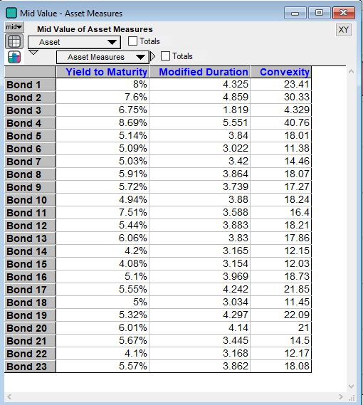 From these cash flows the model will then calculate the yield to maturity, the modified duration and the convexity, which are below: